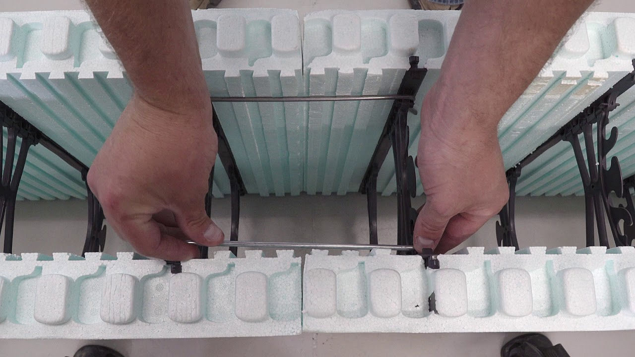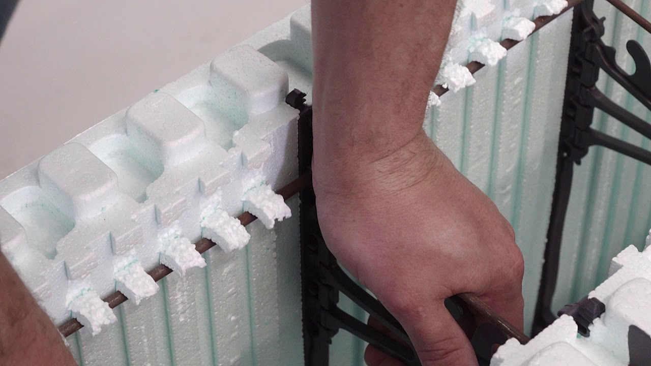 Nudura’s Rebar Clip is specially designed to securely support horizontal reinforcement in the bottom web of the Nudura form during the concrete pour. This clip eliminates the need to tie wire or zip-tie the reinforcement bar in place when it is required to be pulled up into the bottom of the web.